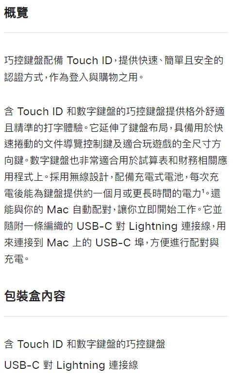 【Apple】 巧控鍵盤(含Touch ID 和數字鍵盤)
